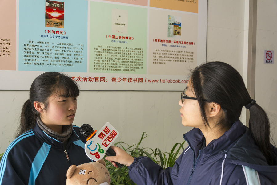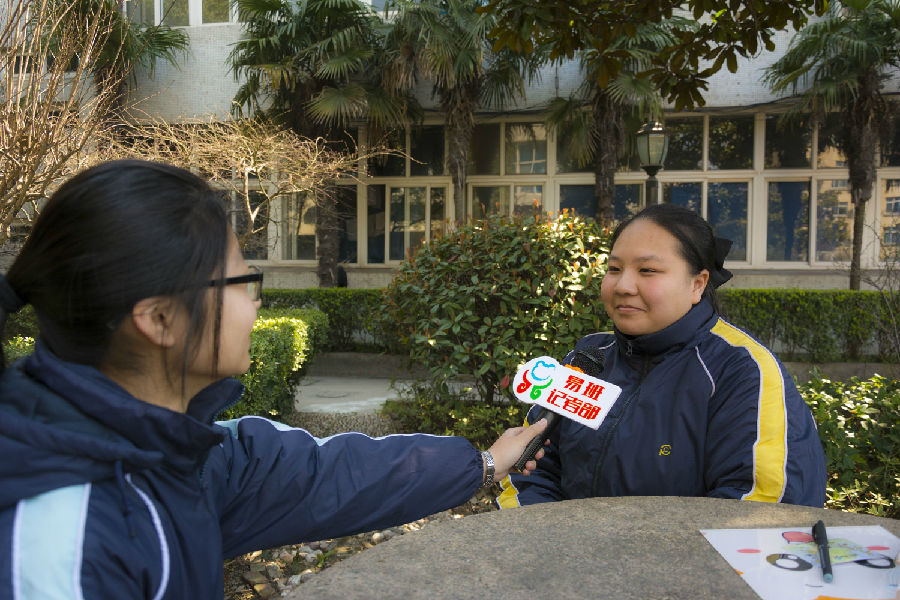 最后我们在学校食堂旁边的小花园对1509班的李奕淳同学进行了采访,她参加的是数学项目比赛,她自己是个理科女,平时对研究数学很有兴趣,因为学习数学更能开阔她的思维这次比赛是用软件来展示数学,对自己是个很大的挑战,还有很多知识等着自己去学习。