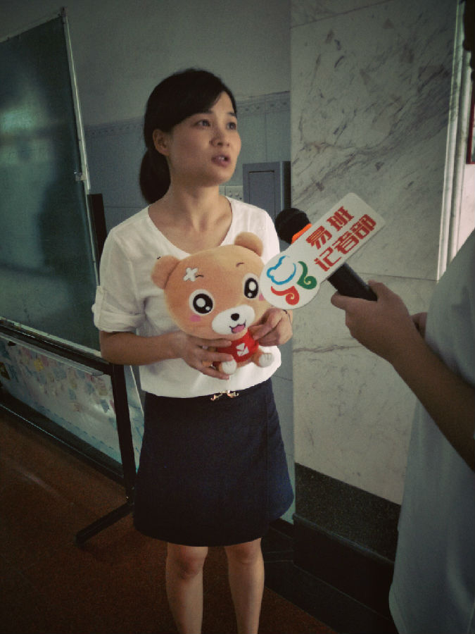 紧接着,我们采访了钟旭老师,了解到钟旭老师对和新生打交道有着一套自己的“秘籍”,她更喜欢和自己的学生像朋友一样多多交流,在见到自己的学生后,老师很快就和他们打成一团。军训闲暇时间,学生们会和教官一起对唱军歌或是扳手腕,辛苦的军训也增添了不少乐趣。