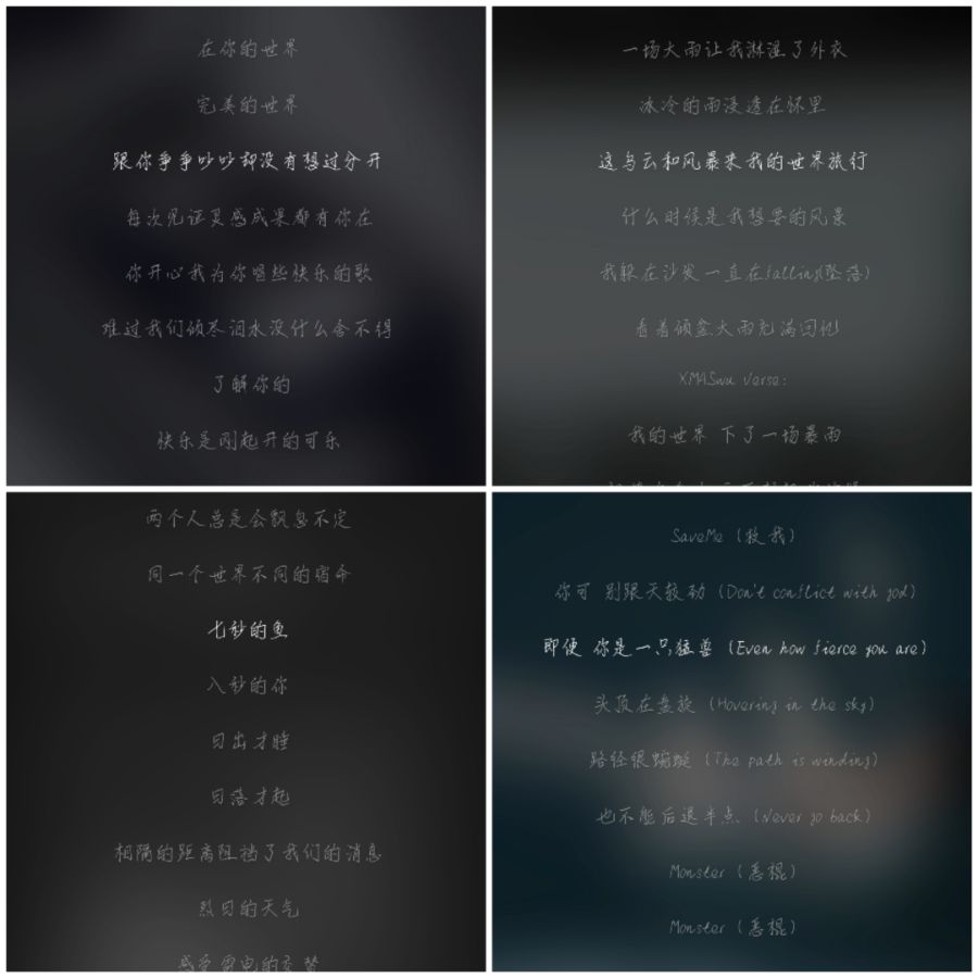 推荐如下几首«危险动物»«大雨»«久我山的烟火»«你的世界»