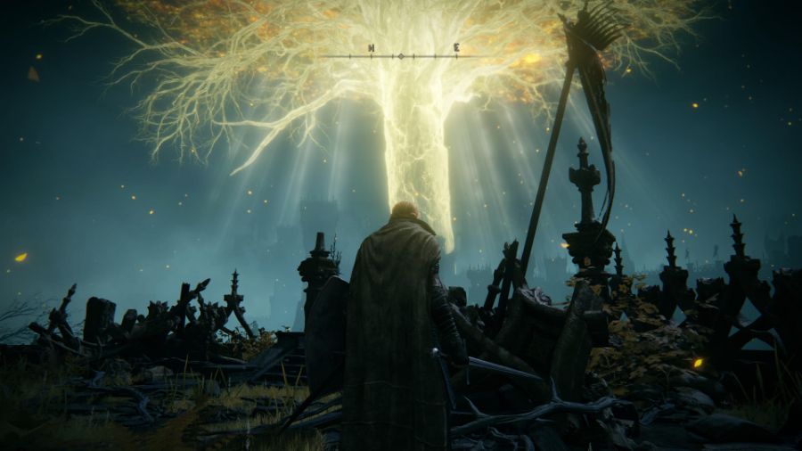 一方面,本作赐福(即《黑暗之魂》中的篝火)的数量很多,多到吓人,且一些在野外游荡的精英怪与BOSS附近,也有着名为“玛莉卡楔石”的“存档点”,供玩家死亡后在此处直接复活——这些设计,让玩家基本告别了此前“魂系列”中死亡后疲于跑图的坐牢体验,时刻能感受到宫崎英高的怜悯。