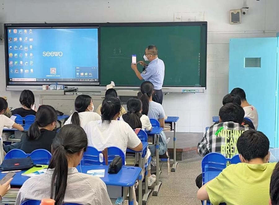 2022年9月9日,为提升新生对诈骗的自我防范意识,协力创造美好安全校园生活。上海新闻出版职业技术学校特邀外校警官利用班会课的时间以线下交流方式对新生进行反诈宣传。