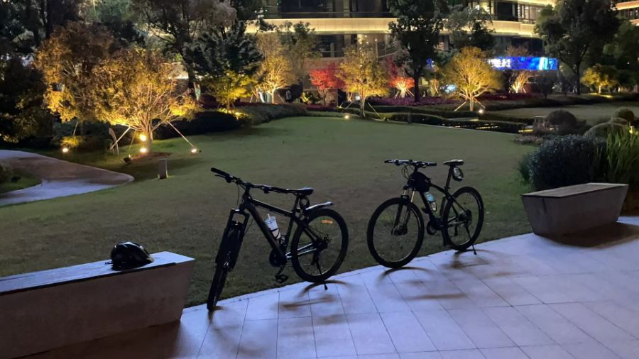 今天,我闲着没事,又拉出心爱的自行车自由地“闯荡”了。我费力地拉出自行车,双手扶住车把,脚叉开,右脚一蹬,便稳稳当当地坐到了自行车上。我一边骑着车,一边哼着小曲儿,时而横冲直撞,时而来个急转弯,时而猛冲向下,时而来个急刹车,时而单手扶车把,时而又“金鸡独立”(自创绝招),花样百出,刺激过瘾,常常逗得路人驻足观望。阴凉的秋风吹到脸上似一把利剑割过,冰冷生疼得很。