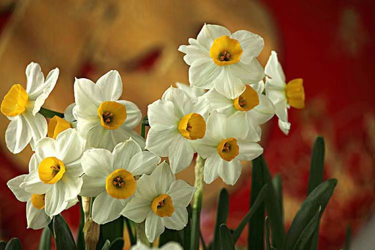 水仙花喜欢凉爽、湿润、阳光充足的生长环境,耐肥也耐寒,能够在不同光线下良好地生长,即使是在半阴处或室内也能正常开花。